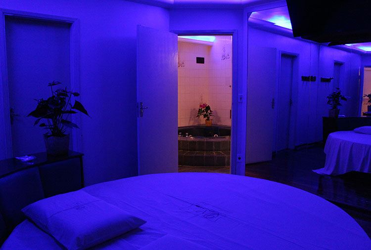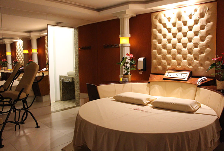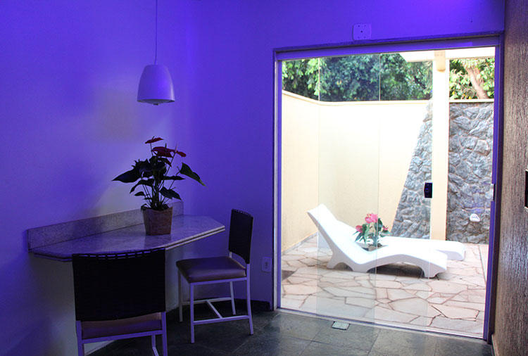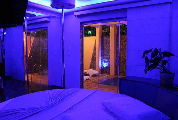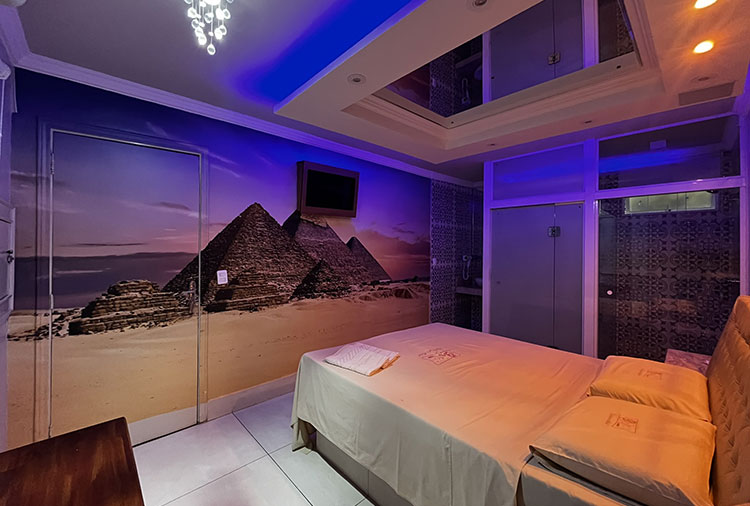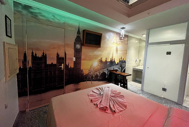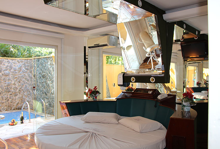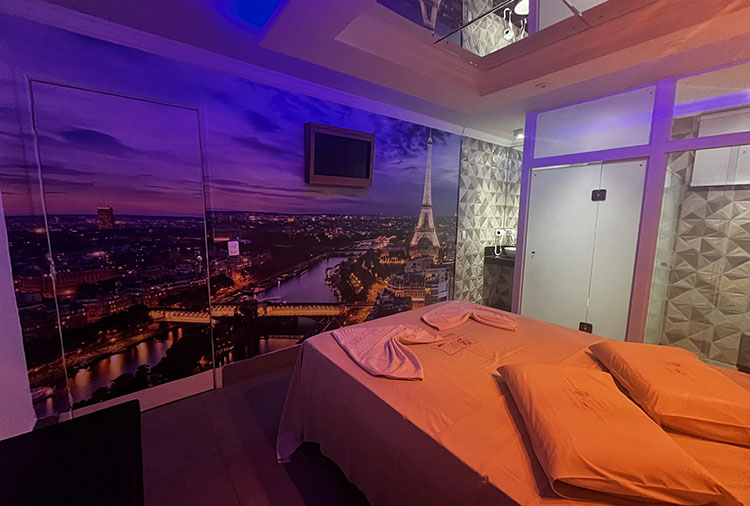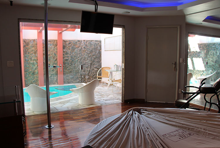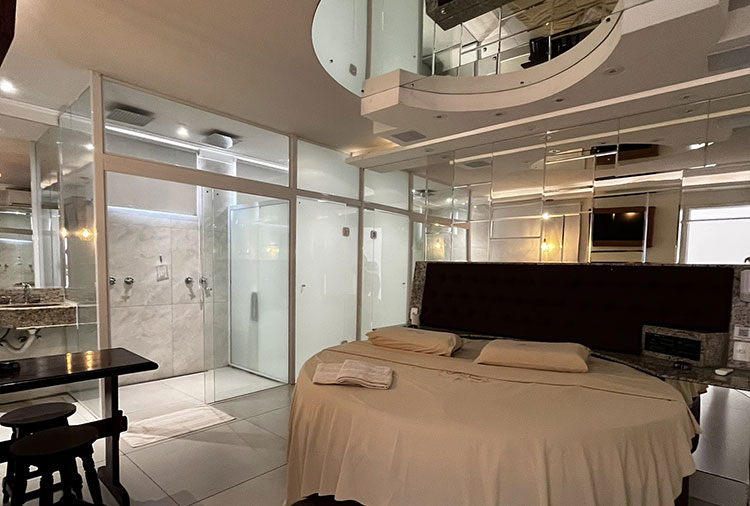 Suítes equipados com: ar-condicionado, garagem privativa, som e TV com canal erótico