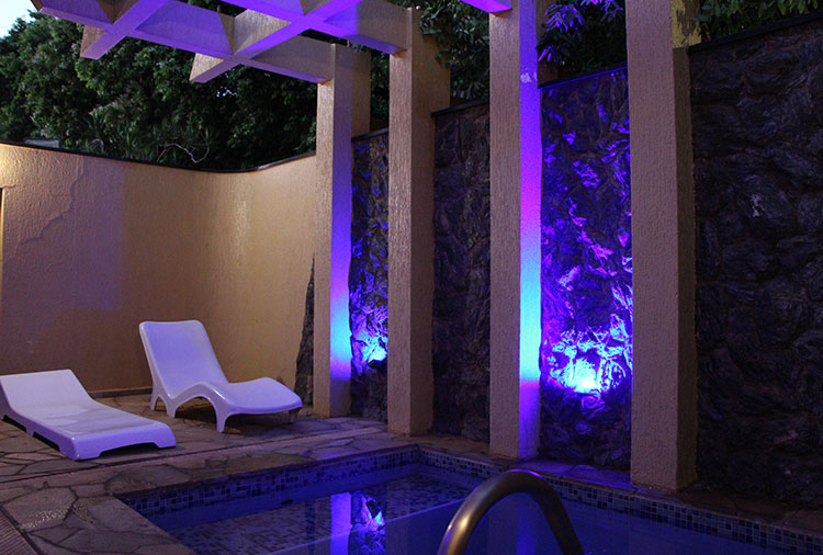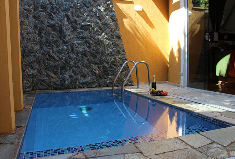 E mais: a suíte Luxo possui piscina com chuva artificial, sauna e hidromassagem para uma experiência única. Venha se sentir especial!