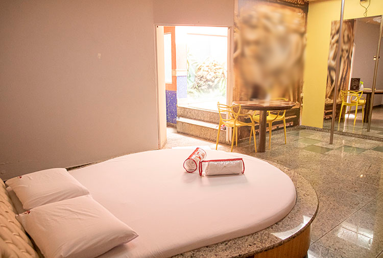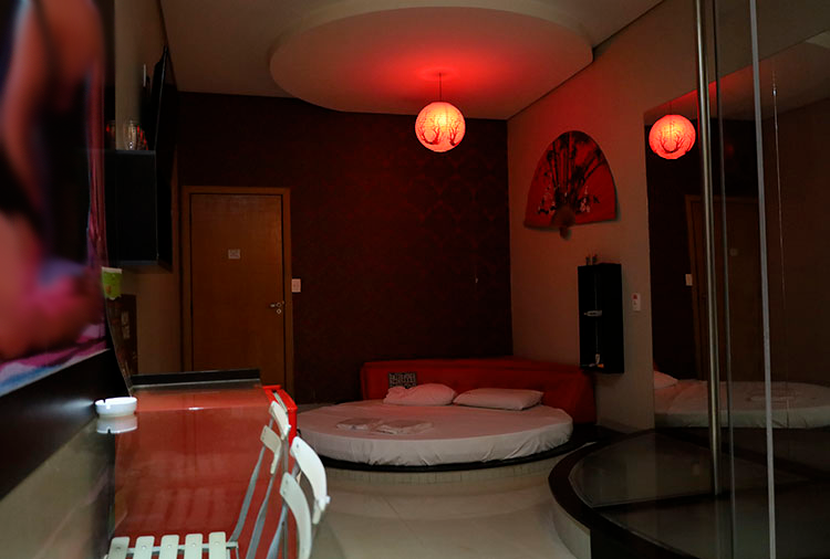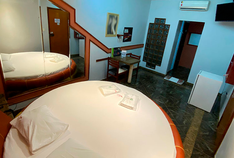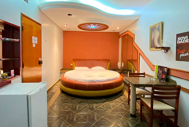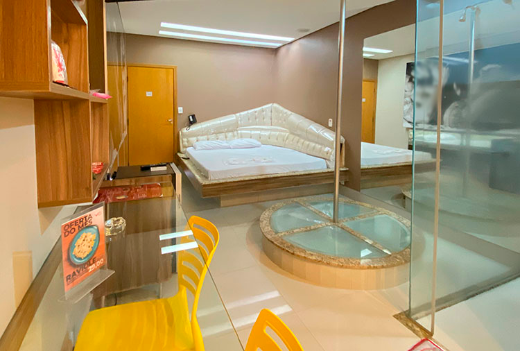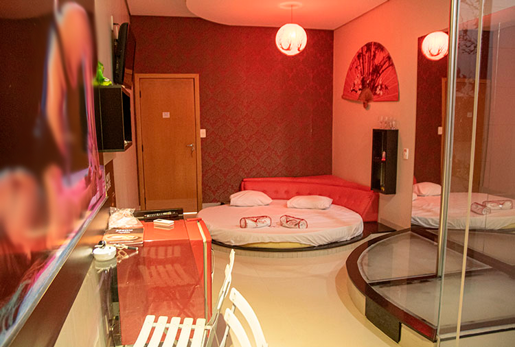 Equipadas com: ar-condicionado, TV com canal erótico, ducha, frigobar, garagem privativa, iluminação especial, som