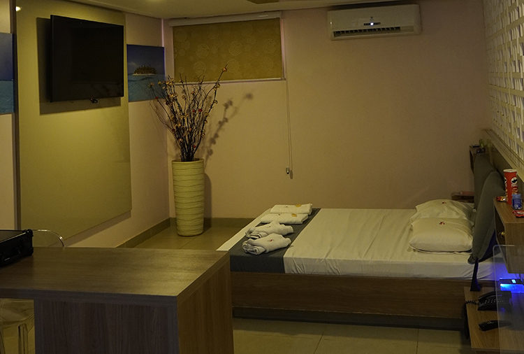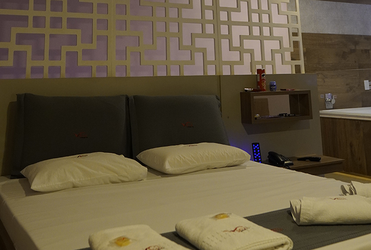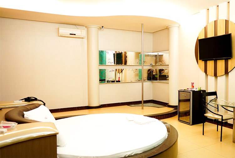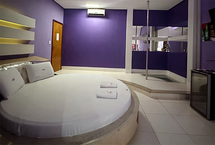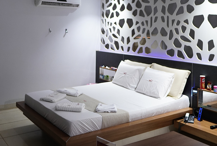 Suítes equipadas com: ar-condicionado, ducha, frigobar, garagem privativa, internet Wi-Fi, som e TV