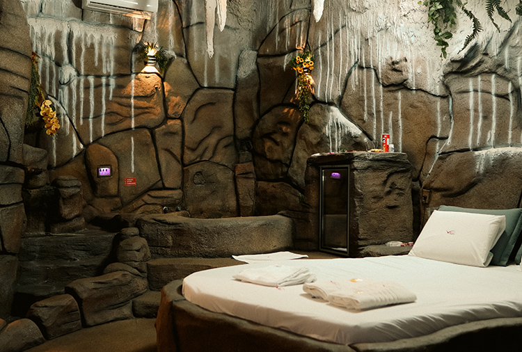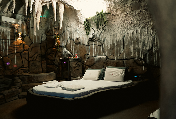 Destaque: para a suíte Caverna, que conta com um ambiente temático e uma hidromassagem para uma experiência completa