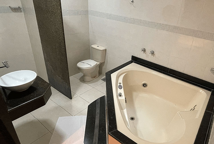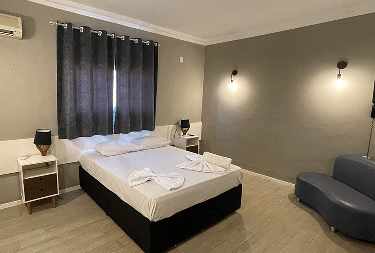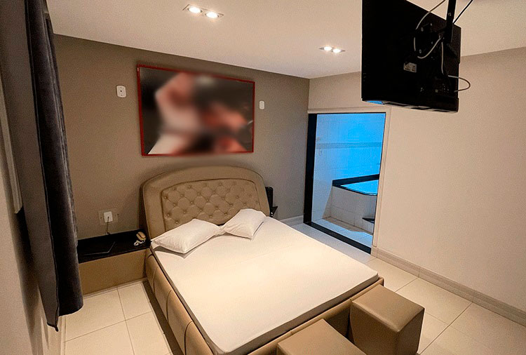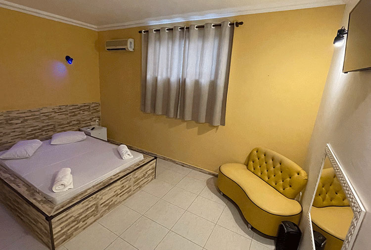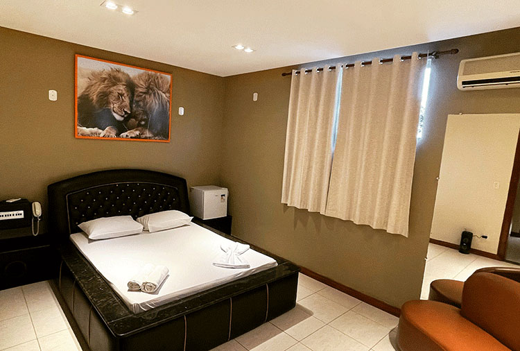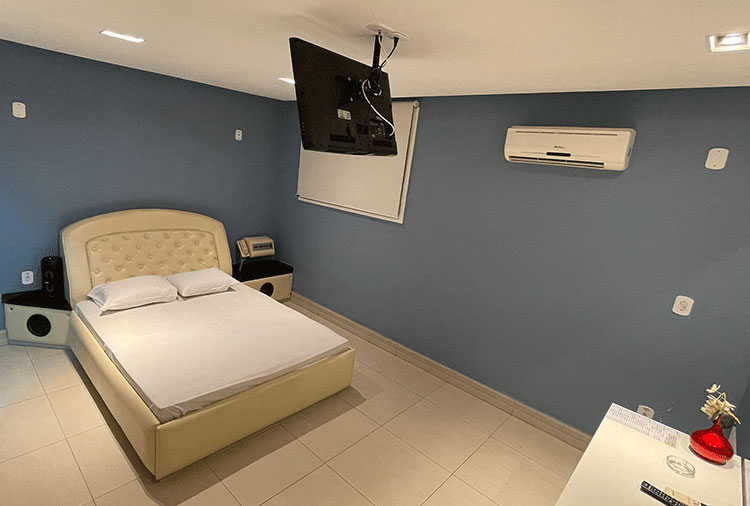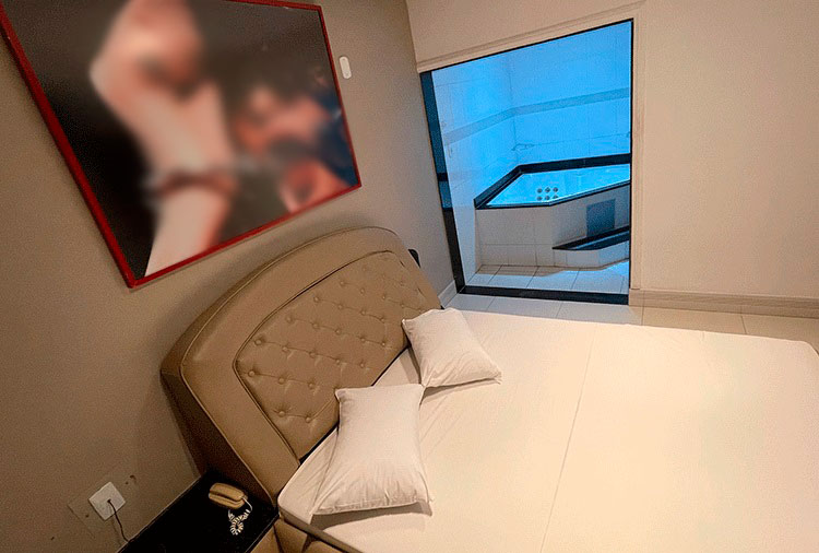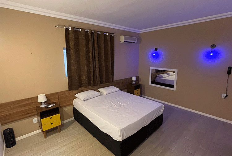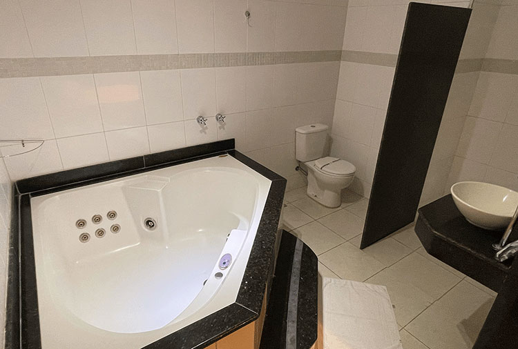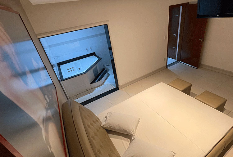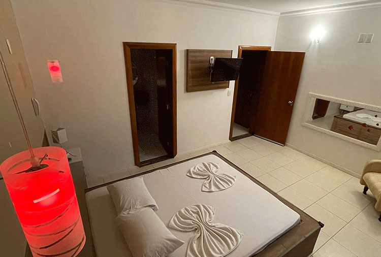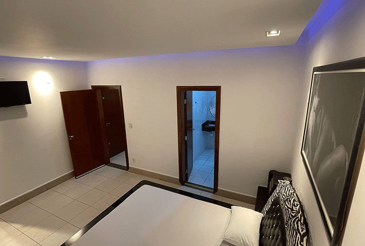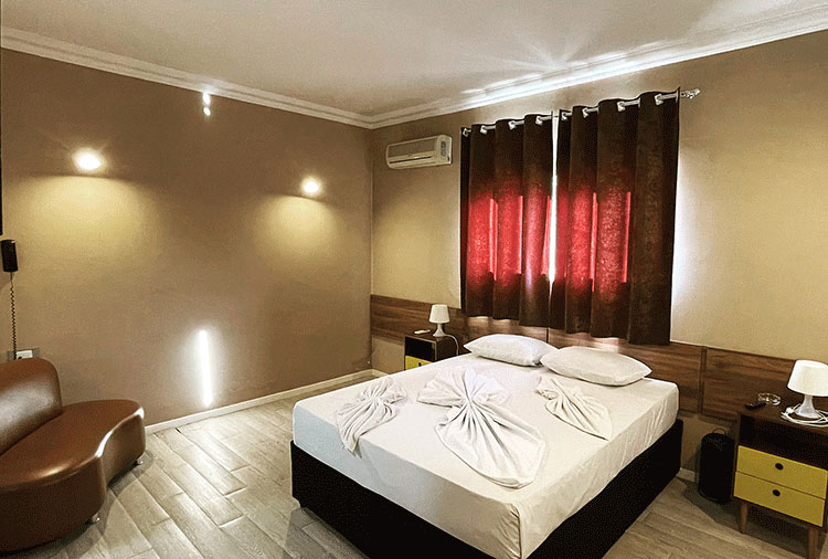 Destaque: a suíte Hidro conta com hidromassagem, TV retrátil e ar-condicionado, é o refúgio ideal para momentos de prazer e relaxamento