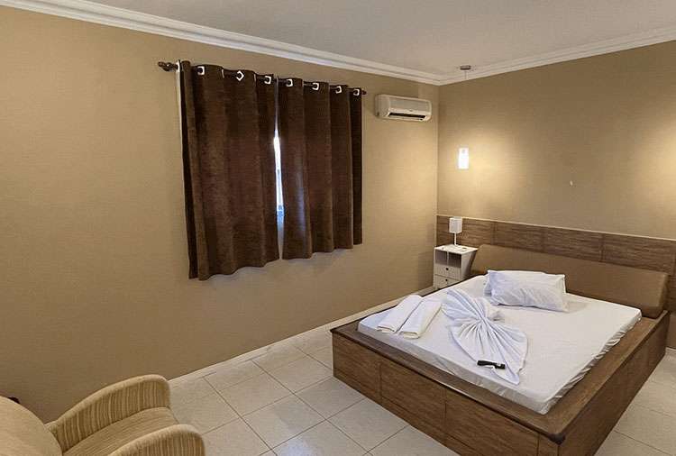 Suítes equipados com: ar-condicionado, frigobar e TV