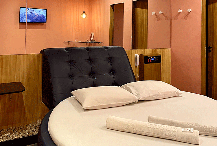 Suítes equipados com: ar-condicionado, frigobar, garagem privativa, internet wi-fi, saleta para refeições, secador de cabelo, som e TV com canal erótico
